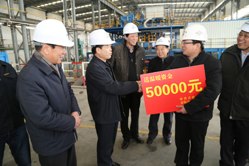 骆玉林副省长深入生产车间,察看了解了聚能钛业经营发展情况,并代表省委、省政府颁发了送温暖慰问金。他指出,聚能钛业是我省新材料产业的重点企业,面对复杂多变、低迷疲软的市场环境,全体干部职工坚守目标、顶住压力,求真务实、攻坚克难,2014年各项工作取得了较好成绩。他要求聚能钛业全面研判经济形势,认准行业发展前景,把握其中蕴藏的重要机遇,进一步坚定信心,加快自主创新,抢占国内市场,推进EB炉成套设备国产化项目,延伸完善产业链条,增强核心竞争能力,圆满完成2015年的生产和销售任务,实现企业持续健康发展。在慰问聚能钛业困难职工王东东、王军同志时,骆玉林副省长详细了解他们的学习、工作和生活情况,勉励他们自强不息,不断提升素质本领,增强战胜困难的能力,以团结协作、勤奋敬业的实际行动,为促进企业科学发展做出积极贡献。
