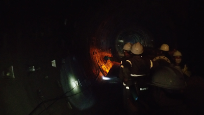 检查组察看调水总干渠出口段工区后,乘小轨道车穿越引水隧洞全线,利用三个多小时时间,施工掌子面现场的安全设施运行状态,以及豆砾石回填灌浆、混凝土衬砌、钢拱架安装及缺陷处理等施工情况进行细致检查了解隧洞出口段F4/F5断层带管片变形段施工处理情况各施工单位进一步合理分工,加强协调配合,强化现场管理,狠抓安全质量,加快推进工程建设提出了具体要求