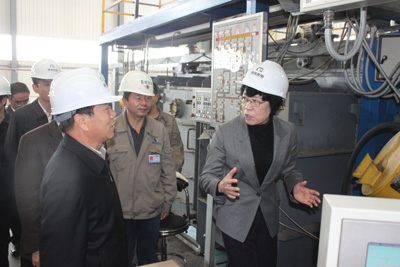 苏宁同志一行首先来到青海水电集团下属青海聚能钛业有限公司,登上电子束冷床(EB炉),仔细察看设备运行和钛锭熔铸过程,询问工艺流程、熔炼技术情况,了解钛行业发展前景,体验一线工人的作业环境,并与职工及外籍技术人员一一握手交谈,询问他们的生活、工作及收入等情况,鼓励他们再接再厉,为企业和社会经济的发展添砖加瓦。
