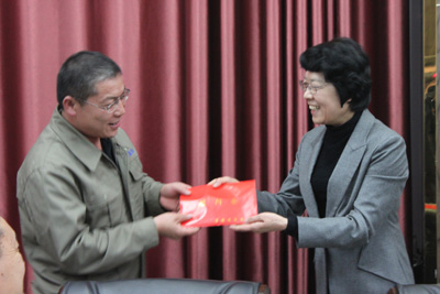 调研期间,苏宁同志还看望了生活困难职工——青海聚能钛业有限公司先进工作者李善庆同志,为他赠送了慰问金。