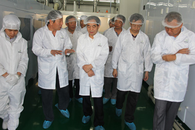 在洁净明亮的现代化车间内,骆玉林副省长一行参观了聚能电力一期50MW太阳能电池片生产流水线作业以及首批试生产太阳能电池片,仔细询问和了解了工艺流程、设备性能、人员配备和产品技术指标等情况,并听取了青海水电集团董事长唐增科、总经理王海青以及聚能电力负责同志关于项目建设、存在主要问题等情况的汇报。骆副省长对我公司项目建设及生产情况给予了充分肯定。他强调,由于受国际太阳能大环境影响,我国太阳能及光伏产业发展遇到了前所未有的困难,希望聚能电力及其上级单位紧紧把握我省新能源产业发展的有利时机,立足本身、迎难而上,积极寻求市场,加大技术革新力度,不断促进企业健康稳定发展。 (文:陈宏 图:马东海