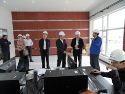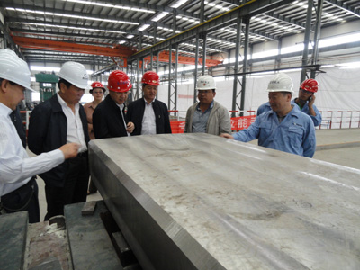 毛占彪副主任一行首先来到青海聚能电力有限公司和青海聚能钛业有限公司,进入到生产车间和厂区,详细察看了正在运行的一期年产50兆瓦太阳能电池片生产线及一期年产3000吨钛及钛合金熔铸EB炉,深入了解其设备技术水平、工艺流程原料供应情况,并察看了以及近期生产的部分成品,全面掌握了其质量特性、销售价格及市场前景等方面的信息。随后,省国资委领导又驱车来到大通县宝库河俄博图水电站工地,进入到正在加紧进行投产前准备工作的发电厂房内,了解了项目概况、实施进度及青海水电实业有限公司的发展历程。